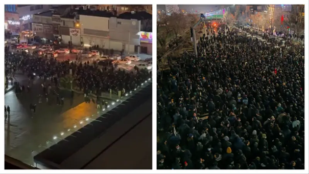 راهپیمایی در شهر مشهد (تصویر راست) و نارمک تهران در شب ۱۸ دی ماه