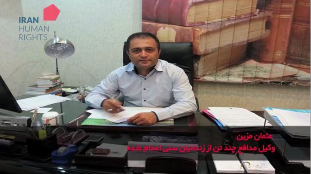 گفتگوی سازمان حقوق بشر ایران با عثمان مزین وکیل مدافع چندتن از زندانیان سنی مذهب که روز سهشنبه ۱۲ مرداد ماه ۱۳۹۵ اعدام شدند. عثمان مزین وکالت آرش شریفی، برزان نصراللهزاده، وریا قادری، کیوان مومنیفر و چندتن دیگر را در مرحله دیوان عالی کشور بر عهده داشت.
