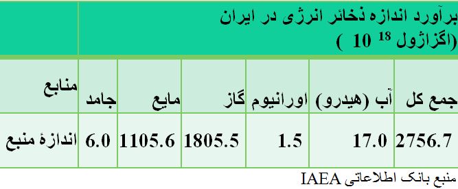 ایران ارزش انرژی زائی منابع اورانیوم با 1.5 اگزا ژول باندازۀ